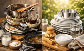 Pulbere de muștar. Îndepărtează eficient depunerile de ulei și grăsime chiar și în apă rece, fără a zgâria suprafața.