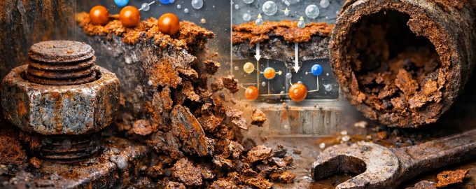 Când fierul intră în contact cu apa și oxigenul, fierul formează oxid de fier hidratat. Spre deosebire de patina pe cupru sau de pelicula de oxid pe aluminiu, rugina are o structură poroasă. Aceasta nu protejează metalul, ci în schimb absoarbe umezeala, permițând coroziunii să pătrundă mai adânc în structura materialului până când piesa este complet distrusă.