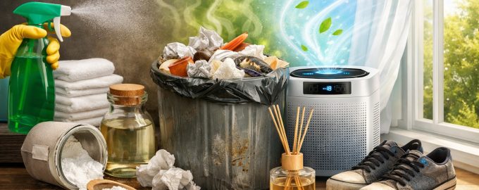 Înainte de a continua cu aromatizarea, este important să găsiți sursa mirosului. Cele mai frecvente cauze sunt chiuveta de bucătărie, frigiderul, coșul de gunoi sau textilele.