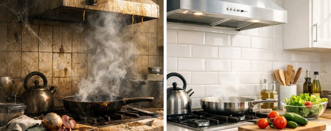 Păstrarea aspectului finisajului. Acizii și pigmenții din vaporii alimentari distrug treptat vopseaua sau tapetul. Îndepărtarea la timp a depunerilor proaspete este mult mai ieftină decât reparațiile neplanificate cauzate de suprafețele decolorate.