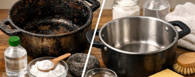 Curățarea vaselor de funingine stătută и mâncare arsă – este o sarcină cu care fiecare bucătar se confruntă mai devreme sau mai târziu. În loc să utilizați produse chimice agresive de uz casnic care pot deteriora smalțul sau metalul, puteți recurge la metode dovedite. Abordarea corectă vă permite să redați strălucirea tigăii fără eforturi inutile și fricțiuni plictisitoare.