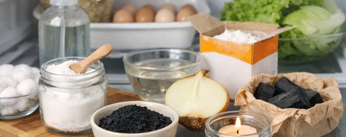 Carbon activat. Acesta este unul dintre cele mai puternice filtre naturale. Este suficient să zdrobiți 10-15 comprimate, să le turnați într-un recipient mic și să le lăsați pe raftul din mijloc. Cărbunele atrage literalmente în sine compușii volatili.