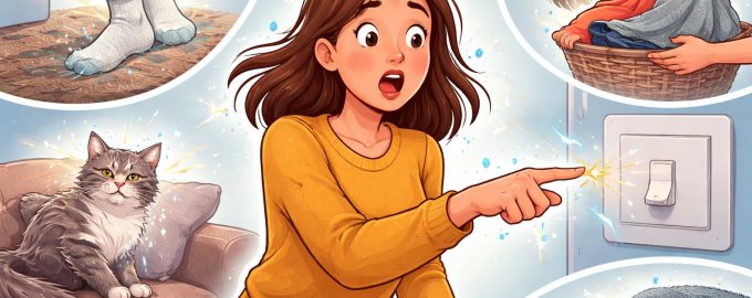 Aer uscat. Apa este un conductor excelent. Dacă umiditatea este ridicată, sarcina statică se „scurge” constant de pe suprafețe prin picăturile microscopice de apă. În timpul sezonului de încălzire, aerul interior devine uscat, ceea ce blochează această cale de scurgere și permite încărcăturii să se acumuleze la valori uriașe.