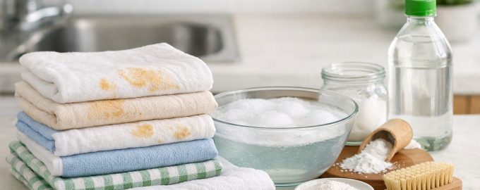 Textilele de bucătărie se uzează mai repede decât orice alt articol din casă. Contactul constant cu grăsimea, sucurile de legume și aburul duce la apariția unor pete încăpățânate pe care spălarea convențională nu le ia întotdeauna. Pentru a vă asigura că prosoape moi și proaspete din nou, este important să folosiți metodele potrivite pentru a descompune murdăria.