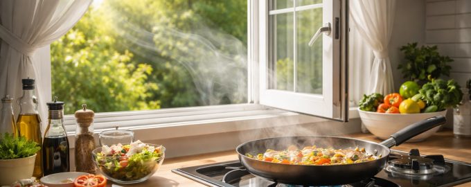 Mulți oameni sunt obișnuiți să pornească hota și cred că acest lucru este suficient pentru a purifica aerul. Cu toate acestea ventilația naturală joacă un rol esențial care este adesea trecut cu vederea. O fereastră deschisă nu este doar o modalitate de a scăpa de mirosul de ceapă arsă, ci este o necesitate pentru a menține microclimat sigur.
