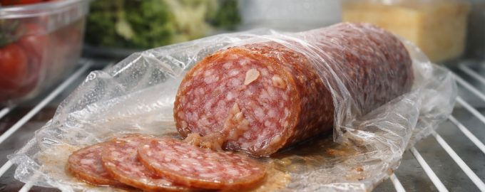 Folie alimentară. Bună pentru produsele crude afumate și vindecate. Se potrivește perfect și protejează împotriva mirosurilor străine.