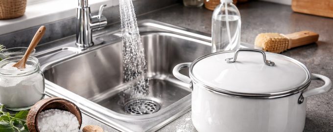 Pentru vasele de gătit neaderente, calcinarea cu sare funcționează bine. Aceasta este o metodă veche care ajută la îndepărtarea murdăriei și la dezinfectarea suprafeței. Cu toate acestea, merită să ne amintim că sarea nu ar trebui utilizată pe oțel inoxidabil pentru o perioadă îndelungată, deoarece poate provoca întunecarea metalului.