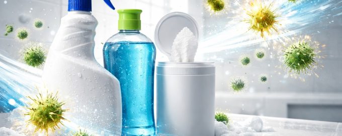 Pentru „artileria grea” din baie și toaletă, cele mai bune produse sunt cele bazate pe hipoclorit de sodiu. Clorul distruge eficient nu numai bacteriile, ci și virușii și ciupercile de mucegai. Cu toate acestea, necesită prudență: lucrările trebuie efectuate cu mănuși și o bună ventilație.