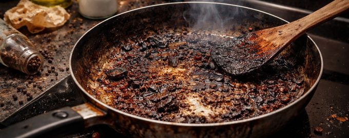 Molte persone sono abituate a cucinare al massimo del calore per accelerare il processo. Questo è un errore critico. Il surriscaldamento del metallo fa sì che l’olio inizi a fumare e a ossidarsi istantaneamente. I prodotti della combustione si incorporano in modo permanente nella superficie, formando un deposito marrone appiccicoso. Le padelle antiaderenti e le pentole in ghisa sono particolarmente colpite se non sono state preparate correttamente per l’uso.