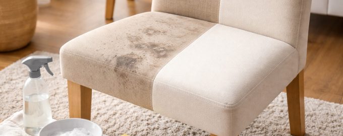 Prima di applicare qualsiasi formulazione, è importante rimuovere polvere e briciole dalla superficie. Utilizzare aspirapolvere con un accessorio speciale per i mobili o una spazzola morbida asciutta. In questo modo si eviteranno le striature di sporco quando si inizierà a pulire a umido. Assicuratevi di testare il prodotto scelto su un’area poco visibile del tessuto, come il fondo della seduta, per assicurarvi che la tintura sia resistente al colore.