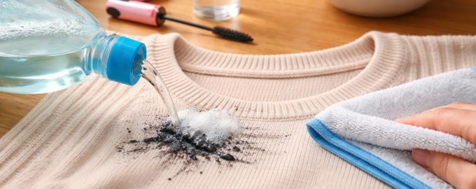 Cea mai rapidă și mai sigură metodă, dacă pata este proaspătă, este să folosiți apă obișnuită. apă micelară. Este concepută pentru a dizolva cosmeticele și funcționează excelent nu numai pe piele, ci și pe țesături.